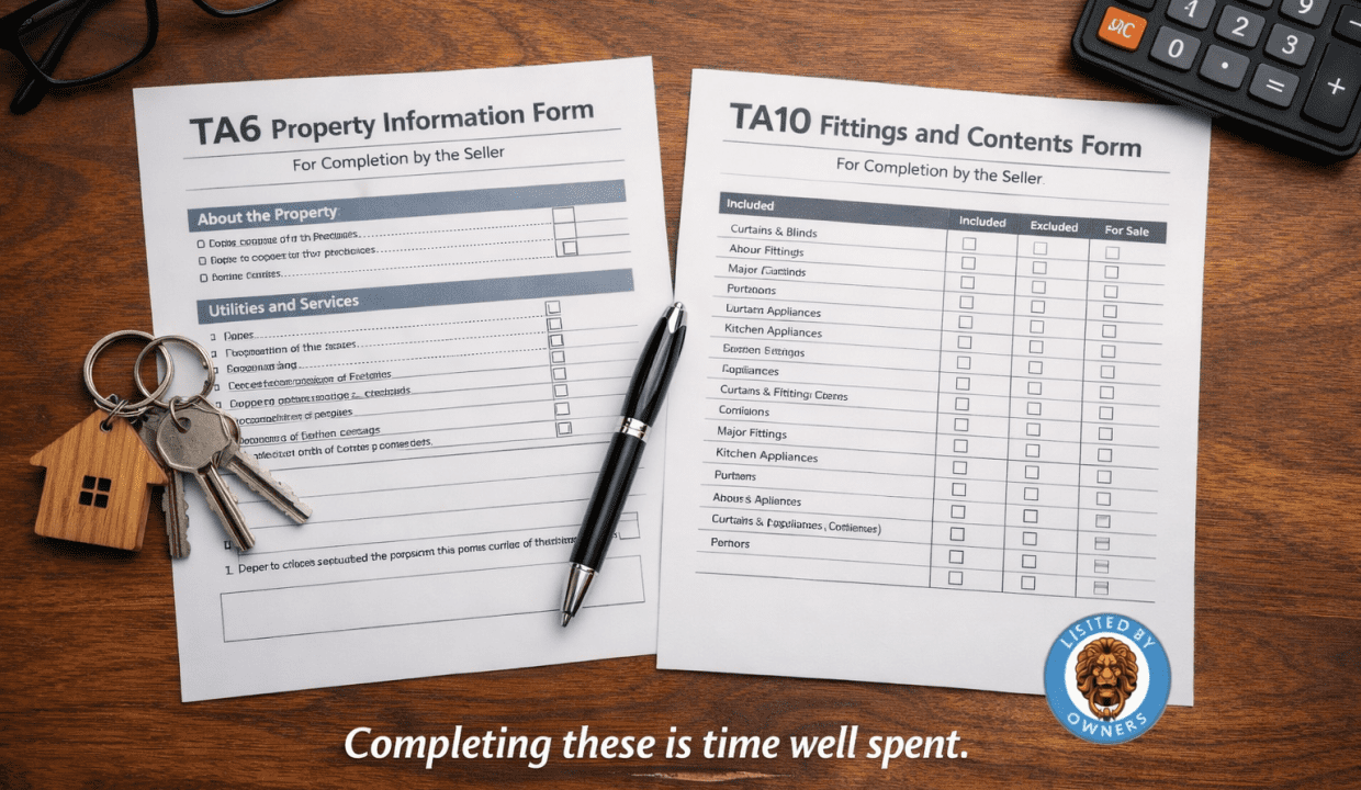 With the TA6 (Property Information Form) giving buyers key details about the property (boundaries, disputes, environmental risks) and the TA10 (Fixtures & Fittings Form) listing what is included/excluded (appliances, light fittings, carpets) to prevent confusion.
